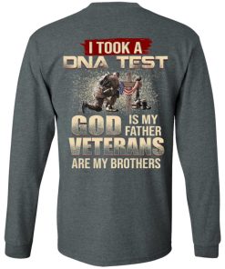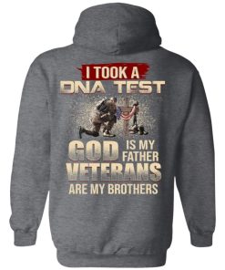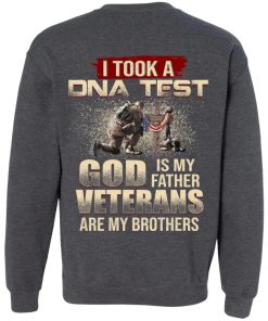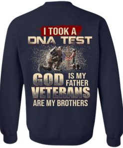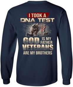 I took a DNA test God is my father Veterans are my brothers shirts. Available in t shirt, long sleeve, tank top, hoodie, sweatshirt and multiple color. If you want in another color please contact us.