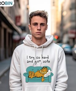The I Tried So Hard And Got Sofa Garfield Shirt is the perfect shirt for the true Garfield fan. A classic cartoon character, Garfield is one of the most iconic animated cats of all time. This shirt features a large print of Garfield lounging on a sofa, along with the classic line “I tried so hard and got so far”. The background of the shirt is an array of bright, colorful stripes, adding a playful touch to the design. The fabric is soft and comfortable, making this an essential part of any cat lover’s wardrobe. Show off your love for Garfield and all things feline with this classic design.