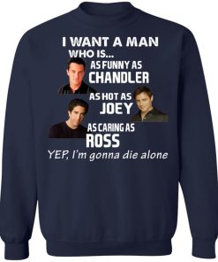 I Want A Man Who Is As Funny As Chandler As Hot As Joey As Caring As Ross Shirt. Available in t shirt, long sleeve, tank top, hoodie, sweatshirt and multiple color. If you want in another color please contact us.