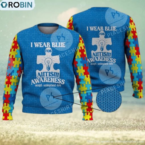 I Wear Blue For Autism Awareness 3D Full Print Ugly Sweater Christmas Gift Sweater