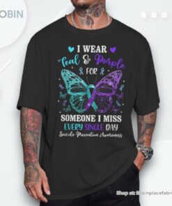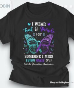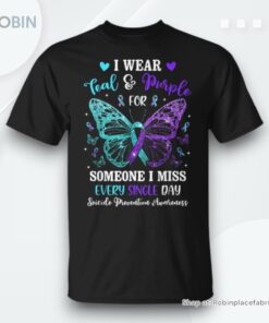 Step into a movement that makes a difference with our beautifully designed shirt, uniting the striking colors of teal and purple to symbolize the fight against suicide. Featuring an intricately detailed butterfly, this exceptional piece is not just a fashion statement, but a powerful message of hope, strength, and awareness. By wearing it, you join a community dedicated to suicide prevention and mental health advocacy, allowing you to make a meaningful impact every time you step out the door.