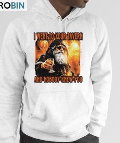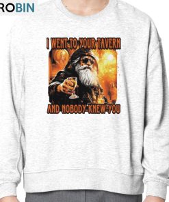 This I Went To Your Tavern And Nobody Knew You t-shirt is a hilarious and unique way to show off your sense of humor. The blue t-shirt features a comedic illustration of a person wearing a puzzled expression and holding onto a tankard as if they are looking for someone. Perfect for any beer-lover, the design is perfect for a night out or casual occasions. It is made from a soft, lightweight cotton blend and has a comfortable relaxed fit. The lightweight fabric is also excellent for layering or wearing under a jacket on colder days. Get ready to make a statement with this fun and fashionable t-shirt.