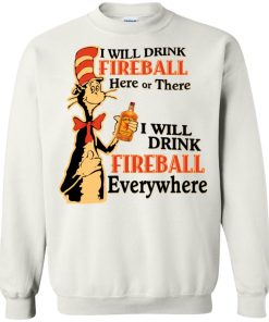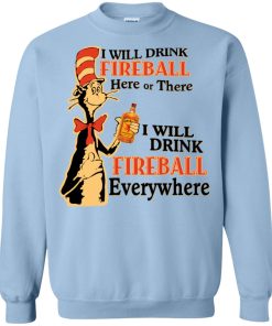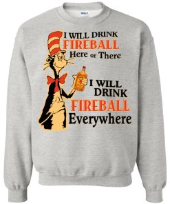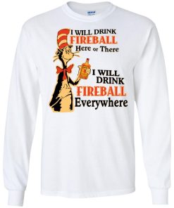 I will drink Fireball here or there I will drink fireball everywhere t shirt, ls, hoodie