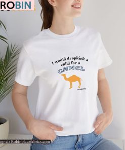 The “I Would Dropkick A Child For A Camel Cigarette” shirt features a bold and controversial statement that is sure to turn heads. The design showcases a tough and rebellious attitude, perfect for those who enjoy making a bold statement with their fashion choices. The shirt is sure to spark conversation and stand out in any crowd. This edgy and provocative piece is not for the faint of heart, but for those who dare to challenge conventions and embrace their rebellious side.