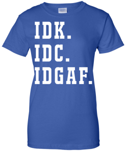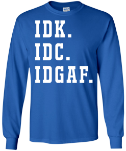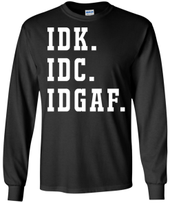IDK IDC IDGAF t shirt, long sleeve, hoodie