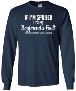 If I’m spoiled it’s my boyfriend’s fault because he treats me like a queen shirt. Buy it now, from $19.99 and $3.99 shipping. This shirt available in t shirt, long sleeve, hoodie and multiple color.