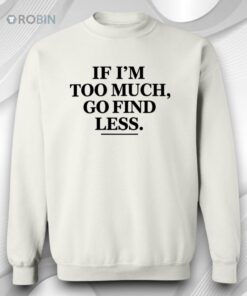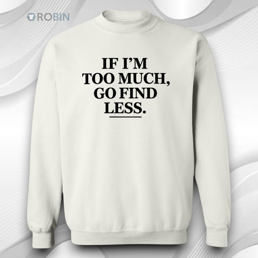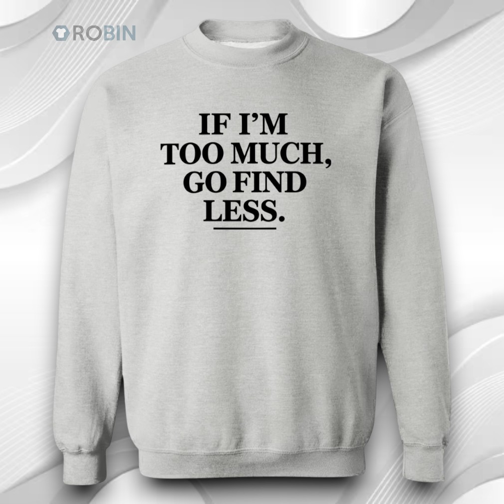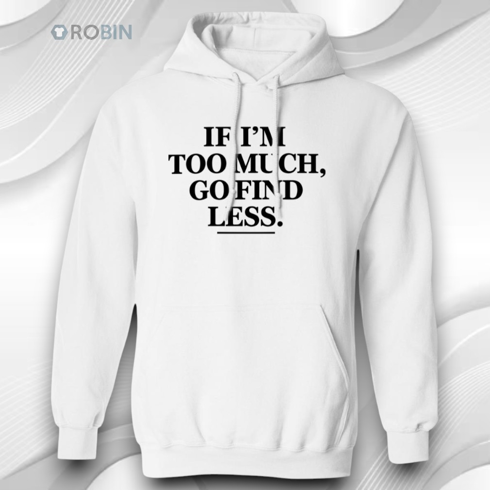 There’s a certain punch to bold serif letters that demand attention before you even catch the words. Picture a deep black hoodie, the kind you reach for when you want to feel grounded yet unapologetically outspoken. Right at its center, stacked in all caps, the phrase “IF I’M TOO MUCH GO FIND LESS” commands presence with sharp, high-contrast white typography. The clean lines of the font are classic but hard-edged, and an underline beneath the last words adds a subtle nudge, as if daring anyone passing by to rethink their limits. This isn’t just a statement piece; it’s armor for anyone who’s been told they’re overwhelming simply for owning their intensity. It resonates with the dynamic individuals who live by their own rules—those who aren’t interested in dimming their shine to fit quieter rooms. It calls to mind characters and creators who embrace that fiery streak, the unapologetic energy in social circles, or moments spent lounging yet fiercely authentic. Ideal for those who talk boldly in spare words and appreciate minimalist design with an edge, this hoodie fits effortlessly into daily rhythms. Whether it’s a casual day out or a chill evening with friends, it’s a quiet but unmistakable way to wear personality on your sleeve—literally. For anyone looking to gift a little rebel spirit wrapped in simplicity, this design strikes the balance between wit and attitude without ever needing to raise its voice.