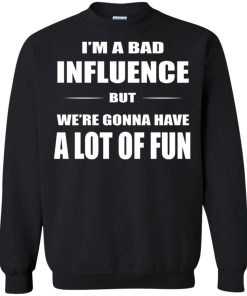 I’m a bad influence but we’re gonna have a lot of fun t shirt, long sleeve, hoodie, sweatshirt, tank top are available