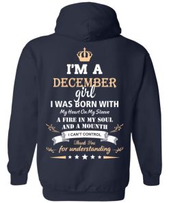 Im a december girl shirts – I was born with my heart on my sleeve a fine in my soul and a mouth i can’t control, Thank you for understanding.