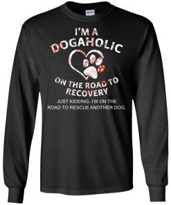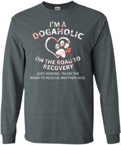I’m a dogaholic on the road to recovery, just kidding, i’m on the road to rescue another dog t shirt, tank, ls, hoodie