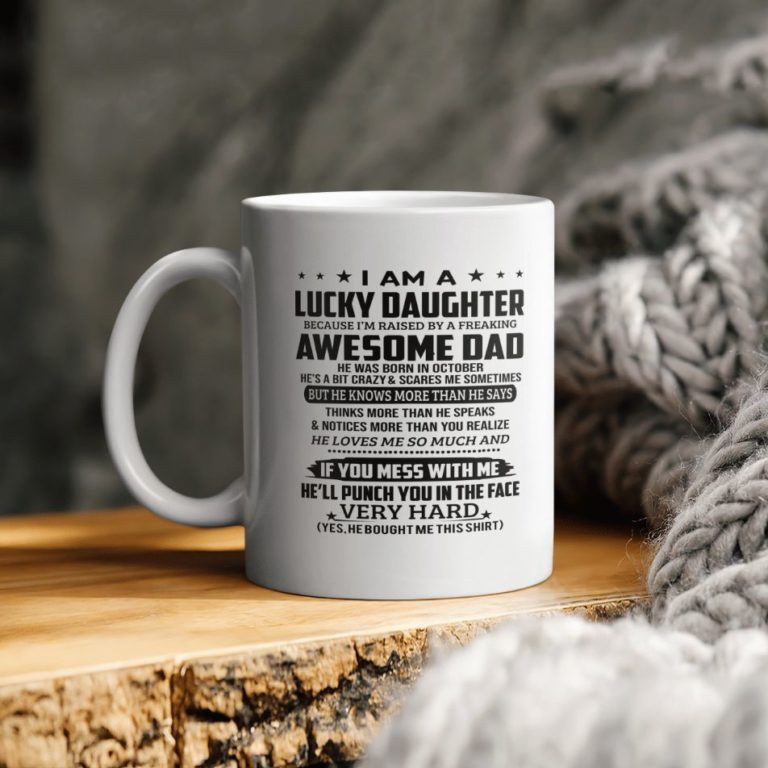 Im A Lucky Daughter Awesome Dad If You Mess With Me He Was Born In October Ceramic Coffee Mug