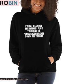 The phrase Im Fat Because Everytime I Fuck Your Dad He Pour Bacon Grease Down My Throat Shirt suggests a sarcastic and humorous tone. It seems to playfully address the idea of weight gain or being overweight in a lighthearted way. The use of bacon grease and intimate relationships in the statement adds an unexpected and comical twist to the narrative. Overall, the phrase appears to be a cheeky and attention-grabbing way of addressing a potentially sensitive topic, catering to those with a more irreverent sense of humor.