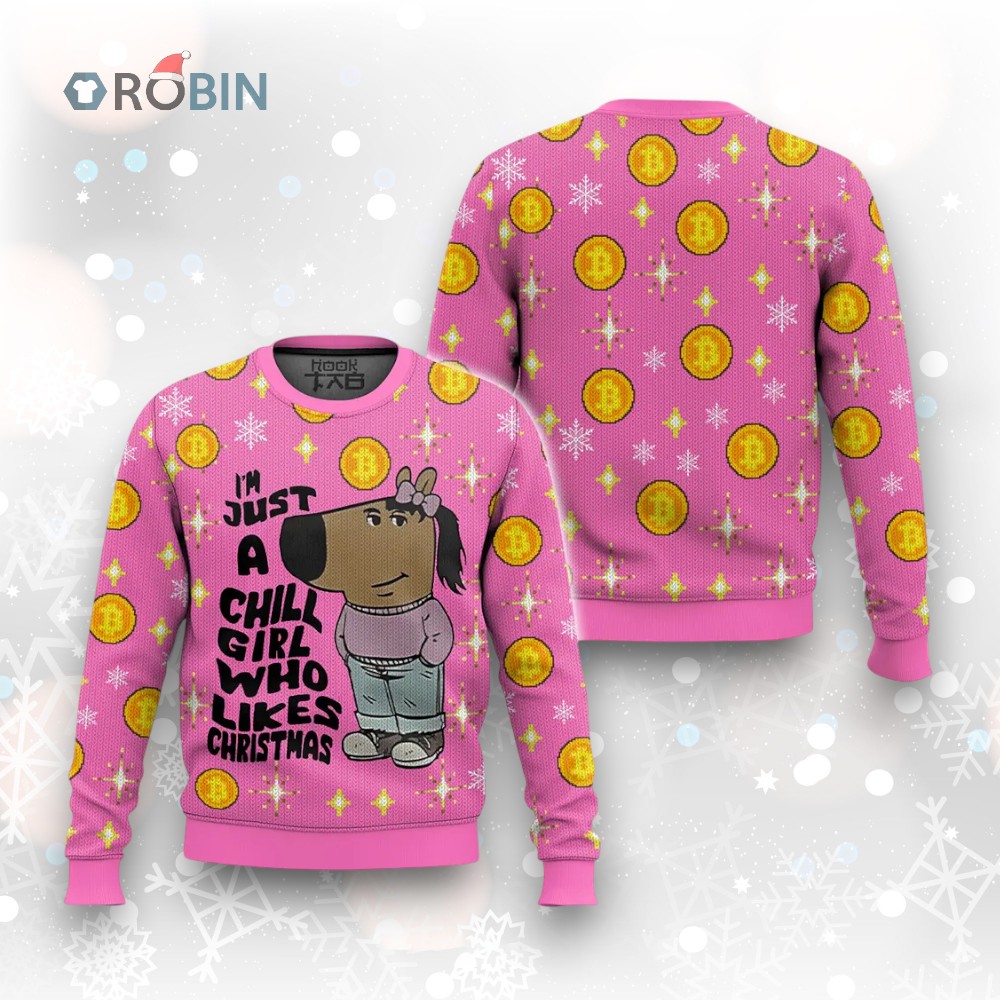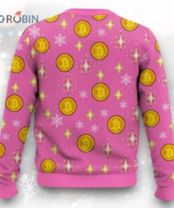Imagine sipping cocoa by the fireplace, wrapped in this sweater featuring playful Bitcoin symbols and delicate snowflakes on a lively pink background. It's not just cozy; it's a conversation starter. Whether you're a crypto enthusiast or just love a quirky holiday vibe, this design brings a smile to any gathering. Ready to make a statement this Christmas? Grab yours now!