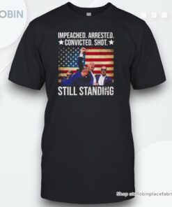 Are you looking for a bold and fearless statement piece to add to your wardrobe? Look no further than our Impeached Arrested Convicted Shot Still Standing Shirt. This shirt is not just a fashion statement, but a symbol of resilience and strength in the face of adversity. With a powerful message and high-quality design, this shirt is sure to turn heads and spark conversations wherever you go. Stand out from the crowd and show the world that you can weather any storm and still come out on top.