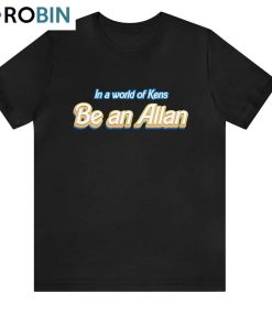 The In A World Of Kens Be An Allan shirt is a cute and stylish short sleeve unisex hoodie that is perfect for all Barbie fans. The shirt features a vibrant and eye-catching design, with the phrase In A World Of Kens Be An Allan printed across the front in bold, colorful letters. The hoodie is made from soft and comfortable fabric, making it ideal for everyday wear. With its fun and empowering message, this shirt is a great way to show off your love for Barbie and inspire others to be true to themselves.