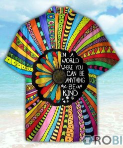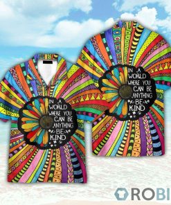 In A World Where You Can Be Anything Be Kind Hippie Sunflower Hawaiian Shirt features