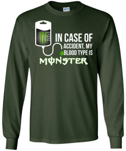 In Case Of Accident My Blood Type Is Monster t shirt, long sleeve, hoodie