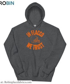 The In Flacco We Trust Sweatshirt by Joe Flacco is the ultimate expression of loyalty and support for the renowned football player. Featuring a long sleeve design, this shirt is perfect for showcasing your admiration for Flacco and his exceptional skills on the field. Wear it to games or simply as a statement piece, this sweatshirt is a must-have for any die-hard fan. Crafted with comfort in mind, it is made from high-quality materials that ensure durability and softness. With its stylish design and iconic slogan, this sweatshirt is a true testament to Flacco’s talent and legacy.