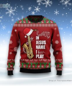In Jesus Name I Play Saxophone Ugly Christmas Sweater, Christian Sweater, God Gift details