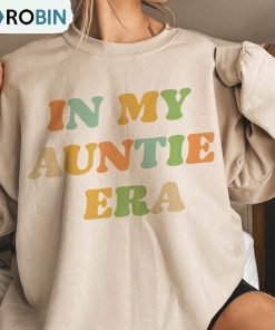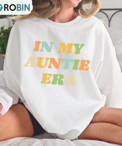 This In My Auntie Era Groovy Shirt New Aunt Unisex Tshirt Short Sleeve is perfect for any aunt. It is made from a soft and comfortable cotton poly blend material, and features a vibrant My Auntie Era Groovy graphic on the front. The t-shirt is designed with a crew neckline, short sleeves, as well as a regular fit for a comfortable, casual look. Whether lounging at home or running errands, this stylish t-shirt will have you looking cool all summer long. The t-shirt also makes a great gift for any Aunt, and would be a great addition to her wardrobe.