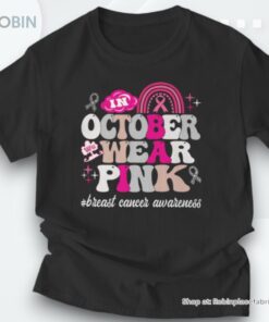 In October We Wear Pink Breast Cancer Awareness Girl Shirt