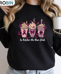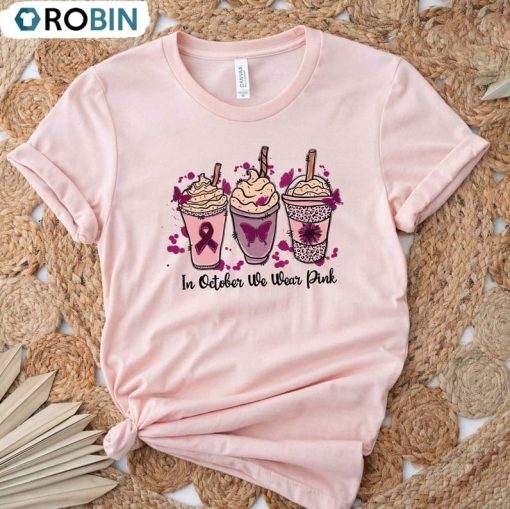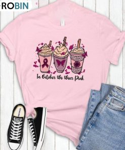 The In October We Wear Pink Coffee Shirt Cancer Support Unisex Tshirt is a stylish and meaningful way to show support for those affected by cancer. Made with soft and comfortable fabric, this crewneck tshirt is perfect for everyday wear. The shirt features the slogan In October We Wear Pink, reminding everyone of Breast Cancer Awareness month. With its unisex design, this tshirt is suitable for both men and women, and is a great conversation starter to raise awareness and show solidarity with cancer patients and survivors.