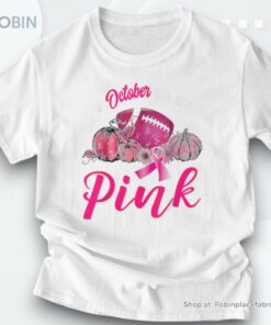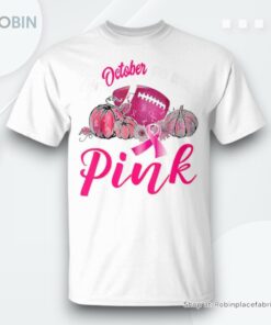 In October We Wear Pink Football Breast Cancer Awareness Shirt