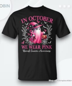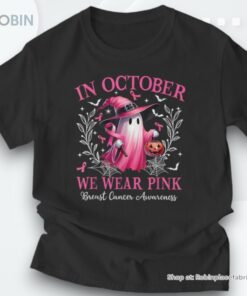 In October We Wear Pink Ghost Witch Breast Cancer Awareness Shirt
