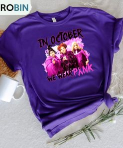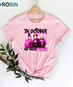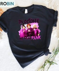 In October We Wear Pink Halloween Shirt, Sanderson Sisters Unisex T-shirt Unisex Hoodie details