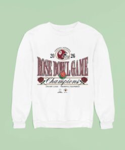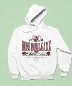 There’s a distinct pride that comes with wearing the memories of a championship season, especially when it’s marked in bold, vintage style. This Rose Bowl Champions Indiana 2026 shirt captures that energy with its retro emblem and large serif typography that feels like a nod to classic collegiate traditions. The design doesn’t just shout victory; it celebrates it with roses delicately woven around the 2026 date, blending that timeless spirit with a touch of elegance. The Rose Bowl graphics are striking but never overdone, balanced by the Indiana Hoosiers helmet logo that grounds the piece firmly in fandom. It’s a shirt made for those who wear passion on their sleeve—whether that’s to rally at game day, commemorate the glory after the fact, or simply carry a piece of that winning identity into everyday moments. The combination of cursive “Champions” and small-caps detailing adds layers of personality, making it feel as alive as the crowd chanting in the stands. This tee pairs effortlessly with worn-in jeans or layered under a team jacket, making it an ideal choice for alumni heading back to campus or devoted supporters looking to showcase authentic pride. It’s the kind of gear that ends up as a favorite because it’s more than just fabric—it’s a statement of loyalty, a slice of sports history, and an emblem of belonging. For anyone who thrives on the rush of Hoosiers basketball and the exhilaration of championship nights, this shirt is a confident and meaningful fit.