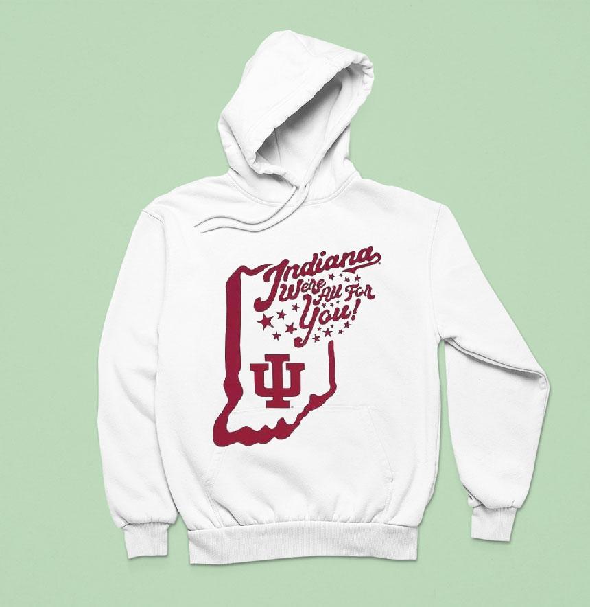 Bold, sweeping lines carve out the outline of Indiana, anchoring the design with unmistakable regional pride. Inside this silhouette, the IU logo plants itself firmly, a symbol as iconic as the heart of any Hoosiers fan. Surrounding it, scattered stars add a subtle sparkle, not overdone but like a quiet cheer, elevating the piece beyond a simple emblem. Below, the retro script of Indiana We're For You! flows with a vintage collegiate flair, its curves and weight balancing nostalgia and energy in one confident stroke. This shirt is more than fabric and ink; it’s a statement for those who carry their Indiana Hoosiers loyalty close, who appreciate design that respects tradition while standing out. The bold typography pairs perfectly with the spirited layout, capturing the essence of game day intensity and campus camaraderie without shouting. For anyone who lives and breathes Hoosiers – whether cheering from the stands, recalling legendary seasons, or sharing stories on campus – this shirt feels like a natural extension of that identity. It’s the kind of gear that fits seamlessly into a weekend spent rallying with friends or passed along as a thoughtful, authentic nod to fellow supporters. The Indiana Hoosiers shirt pays attention to those details that truly matter, making sure pride wears well.