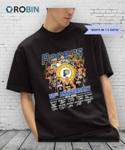 Celebrate half a century of Pacers basketball with this commemorative signature shirt! Marking 50 years of hoops history, this is a must-have for any die-hard fan. Get yours now and show your Pacers pride!
