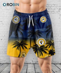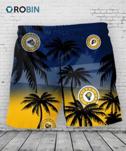 Rep your team in island style! These breezy shorts feature a tropical coconut tree design and Pacers colors. Perfect for summer hoops, BBQs, or just relaxing. Get ready for compliments! Limited stock available.