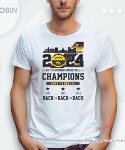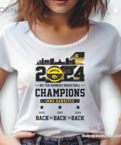 Iowa Hawkeyes Skyline 2024 Big Ten Women’s Basketball Champions Back To Back To Back Shirt