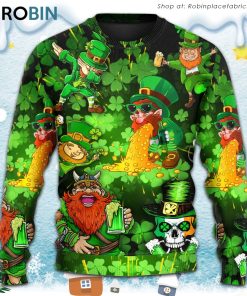 Irish Beer St Patrick's Day Viking Skull Leprechaun Gnome Christmas Ugly Sweater, Sweatshirt details