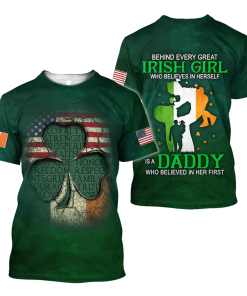 Irish St.patrick Day Behind Every Great Irish Girl Who Believes In Herself Is A Daddy 3d Hoodie, T Shirt