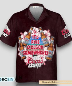 It's Five O'clock Somewhere Coors Light Hawaiian Shirt details