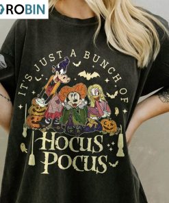 The It's Just A Bunch Of Hocus Pocus shirt is a funny and whimsical short sleeve tee. Featuring the iconic Mickey and Friends characters, this shirt is perfect for fans of Disney and Halloween. The shirt is made from soft and comfortable material, making it perfect for everyday wear. With its vibrant colors and playful design, it's sure to be a hit at any Halloween party or Disney-themed event. Show off your love for Disney and the spooky season with this fun and festive shirt.