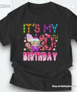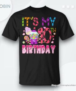 Celebrate a milestone birthday with a burst of sweetness and style that reflects the joyous spirit of turning ten! Our exclusive birthday shirt is designed for young girls who are ready to embrace their double-digit year with flair and excitement. Featuring vibrant colors and playful designs reminiscent of a whimsical candy land adventure, this shirt is perfect for making your little one feel special and stand out on her big day. Crafted with comfort in mind, it's perfect for both the birthday celebration and everyday adventures. Get ready to capture beautiful memories and make your ten-year-old shine like the star she is, with a touch of candy-inspired magic!