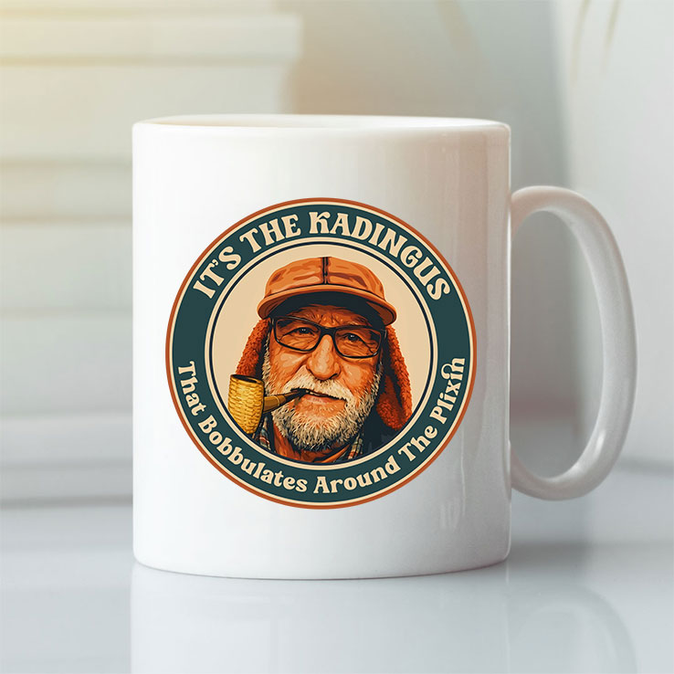 Some characters just stick with you, like old friends whose quirks feel familiar, even if you’ve only just met them. This mug captures exactly that vibe with its playful nod to the legendary Kadingus figure—the kind of character whose stories bobbulate endlessly around the plixin, sparking chuckles and curiosity in equal measure. At the center, you’ll find a charming illustration of an elderly man sporting a cap and a pipe, rendered in a bold, vintage style that feels both timeless and lighthearted. The circular badge framing his portrait is awash in contrasting teal and orange tones, creating a striking yet approachable look. The typography curves confidently along the edges, with a serif-like font that adds a dash of sophistication without taking itself too seriously. Every detail feels carefully thought out, from the cartoonish expression that invites a second glance to the sturdy shape of the mug itself, built to withstand everyday use while showcasing this quirky design. It’s the kind of piece that belongs on your desk, kitchen shelf, or tucked next to your favorite reading chair, perfect for sharing a laugh with colleagues or friends—especially those who appreciate witty humor and retro flair. For anyone who delights in the odd and whimsical, this mug isn’t just about coffee or tea—it’s a small daily ritual, a conversation starter, and a subtle badge of identity all at once. It’s the Kadingus that bobbulates around the plixin mug, and maybe, just maybe, it’ll become an unexpected favorite in your collection.