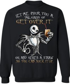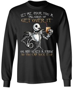 Jack Skellington Let Me Pour You A Tall Glass Of Get Over It Shirt. Available in t shirt, long sleeve, tank top, hoodie, sweatshirt and multiple color. If you want in another color please contact us. Quality control before delivery. Print: Digital printing, colors won’t fade or peel. The design is printed with new age printing technology. It is printed with a water – soluble and eco – friendly ink. Treat yourself, or make this shirt the perfect gift n birthdays, anniversaries, holidays, or give a gift to friend, yourself, or family, or for no reason at all.