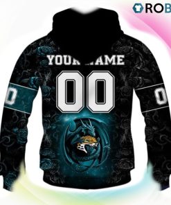 The Jacksonville Jaguars sweater is a stunning piece of clothing that showcases the fierce and powerful nature of the team. With its unique design, featuring a magnificent rose and dragon motif, this hoodie truly stands out from the rest. The intricate details and vivid colors of the design make it a must-have for any fan of the Jaguars. Whether you wear it to a game or out on the town, this jaguars sweater is sure to turn heads and show off your team spirit.