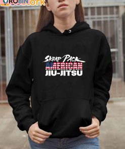 The Jake Shields Skrap Pack American Jiu Jitsu Shirt is a garment that radiates toughness and skill. With a design that embodies the spirit of Jiu Jitsu and the Skrap Pack, this shirt is a symbol of strength and determination. The bold graphics and sleek style make it a must-have for any fighter or fan of the sport. Made with high-quality materials and attention to detail, this shirt is not just a piece of clothing, but a statement of passion and dedication to the art of Jiu Jitsu.