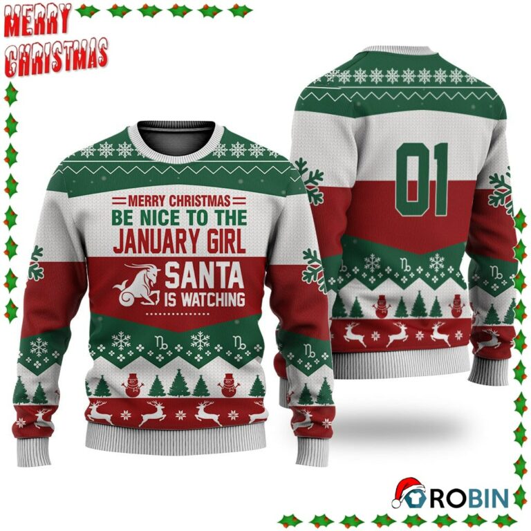 January Girl All Merry Christmas Be Nice Ugly Sweatshirt, Sweater images