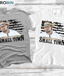 This Jason Aldean Small Town Shirt is perfect for any country music fan. The unisex t-shirt features a classic crewneck and short sleeves, with a patriotic design on the front. The design features a vintage black and white photo of Jason Aldean surrounded by stars and stripes. The t-shirt is made from a comfortable cotton/poly blend, making it a great choice for any country music fan. Show your patriotism and admiration for Jason Aldean with this stylish crewneck t-shirt.