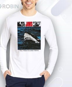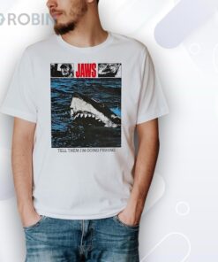 Dive into iconic movie nostalgia with a twist of humor in this design. Featuring a lurking shark beneath choppy waves and a cheeky Tell Them I'm Going Fishing line, it’s perfect for those who love a touch of adventure. Bold graphics make it a standout choice for casual outings or themed events, appealing to fans of classic cinema and sea adventures alike.