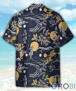 The Hula Moon Retro shirt, inspired by the iconic look of actor Jay Hernandez in the Magnum PI reboot, is a vibrant and stylish Hawaiian shirt that captures the essence of tropical paradise. With its colorful floral pattern and relaxed fit, this shirt exudes a laid-back and carefree vibe. Perfect for cosplay or adding a touch of Hawaiian charm to your everyday look, the Hula Moon Retro shirt exudes the spirit of aloha and captures the essence of the Magnum PI series.