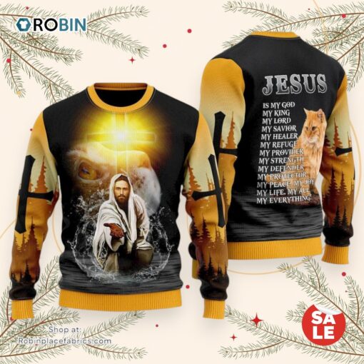 Step into the festive season with a holiday sweater that brings warmth, humor, and a unique flair to your wardrobe. Combining the serene spirit of faith, the fun-loving charm of feline friends, and the sci-fi excitement of an intergalactic saga, this sweater is more than just festive wear—it's a conversation starter. Whether you're attending an ugly sweater party or simply decorating cookies at home, this sweater wraps you in a cozy blend of holiday cheer and pop culture. Unmatched in its delightful symmetry of style and whimsy, it promises to be the standout piece in your winter collection, perfect for making memories with loved ones. Embrace the laughter, warmth, and joy of the season with a sweater that’s as dynamic and unique as the holiday spirit itself.