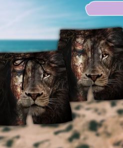 This beach short features a unique and eye-catching design, with a majestic lion roaring fiercely beside Jesus. The vibrant colors and intricate details make it the perfect attire for a summer holiday. The comfortable and quick-drying fabric ensures a pleasant experience at the beach or pool. It is a thoughtful and stylish gift for someone who loves statement pieces and wants to stand out in the crowd during the summer season.