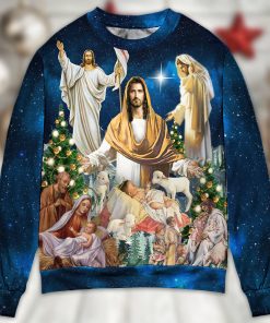 The Jesus Christmas Miracle Night Christmas Ugly Sweater Sweatshirt is a festive and quirky garment perfect for the holiday season. This sweatshirt embodies the essence of Christmas with its playful design and vibrant colors. It features various symbols and images associated with Christmas, such as Santa Claus, reindeers, and snowflakes. The sweatshirt showcases an abundance of holiday cheer and is sure to be a conversation starter at any Christmas party or gathering. Made from comfortable and breathable materials, it allows you to stay warm and cozy during the chilly winter nights. Get ready to spread the Christmas spirit with this fun and festive sweatshirt.
